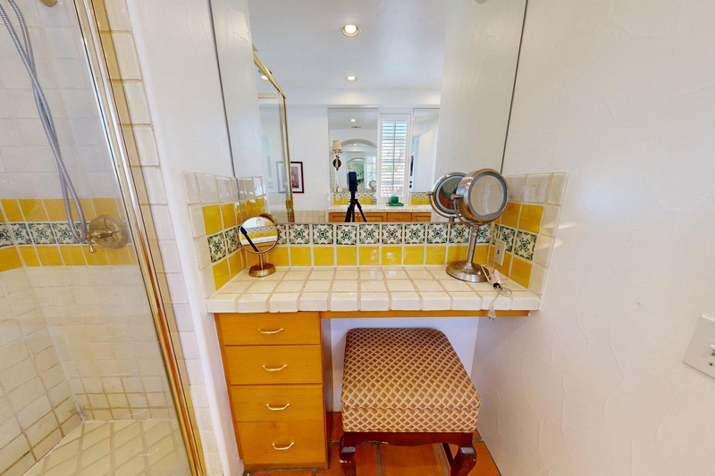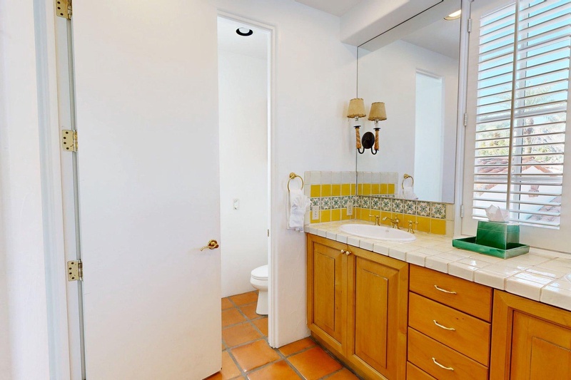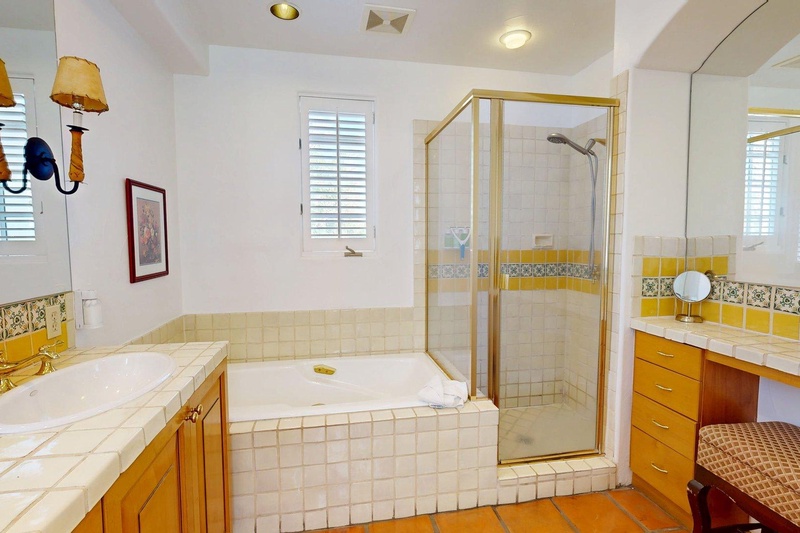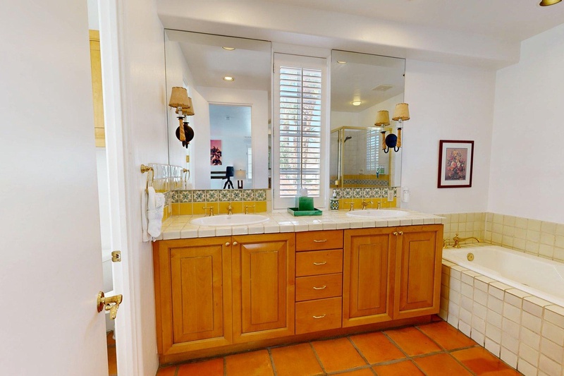 Upstairs studio at La Quinta Resort in the Spa Villas. Western views of the Santa Rosa mountains from the private balcony. Features a king bed, full sleeper sofa, TV & mini-bar. Bathroom includes a separate shower & tub. Short walk to the main hotel lobby, conference center, restaurants, shops & spa.
